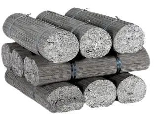 Barres d’acier sans relief, disponibles en différentes longueurs. Souples et solides, elles complètent les armatures en béton.